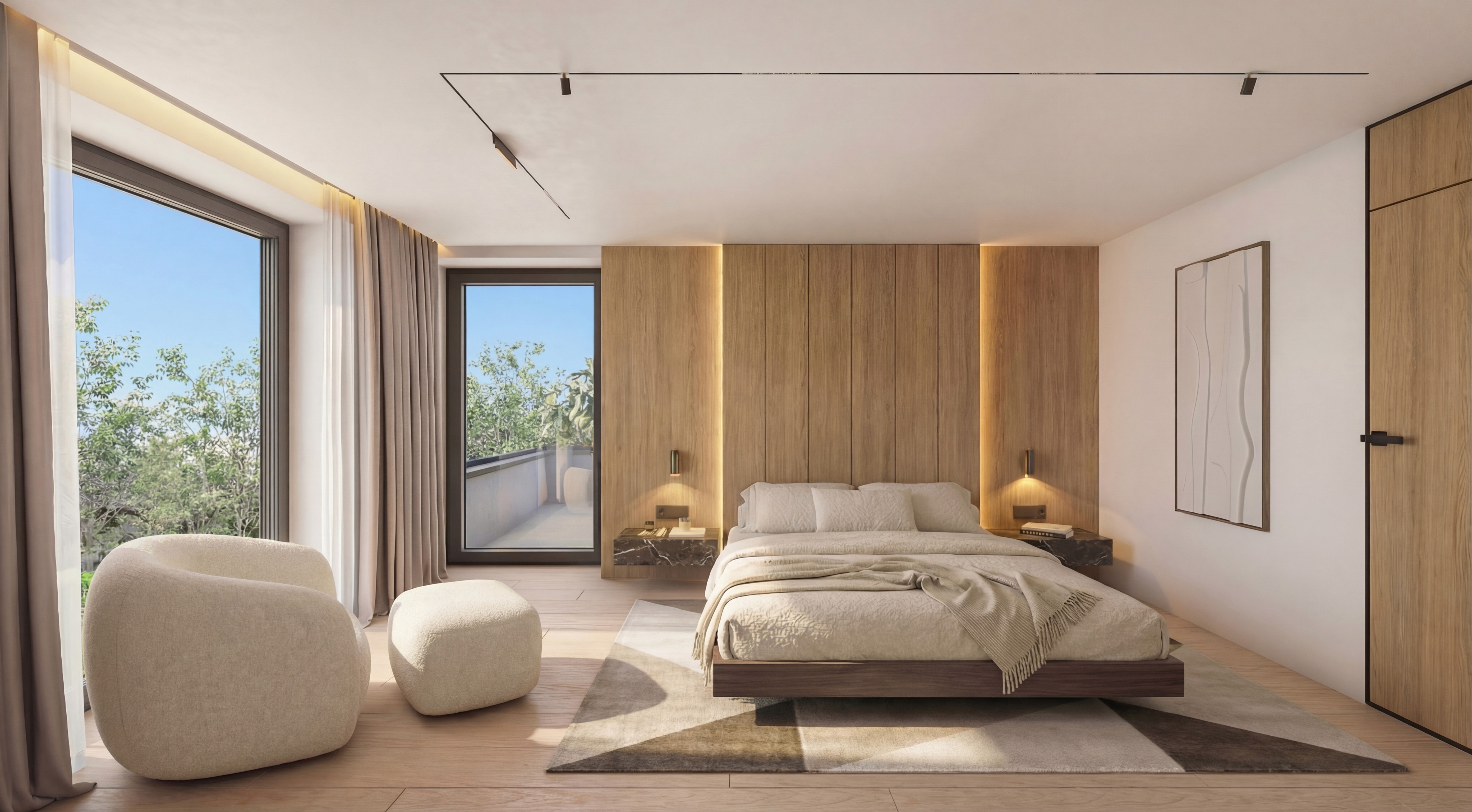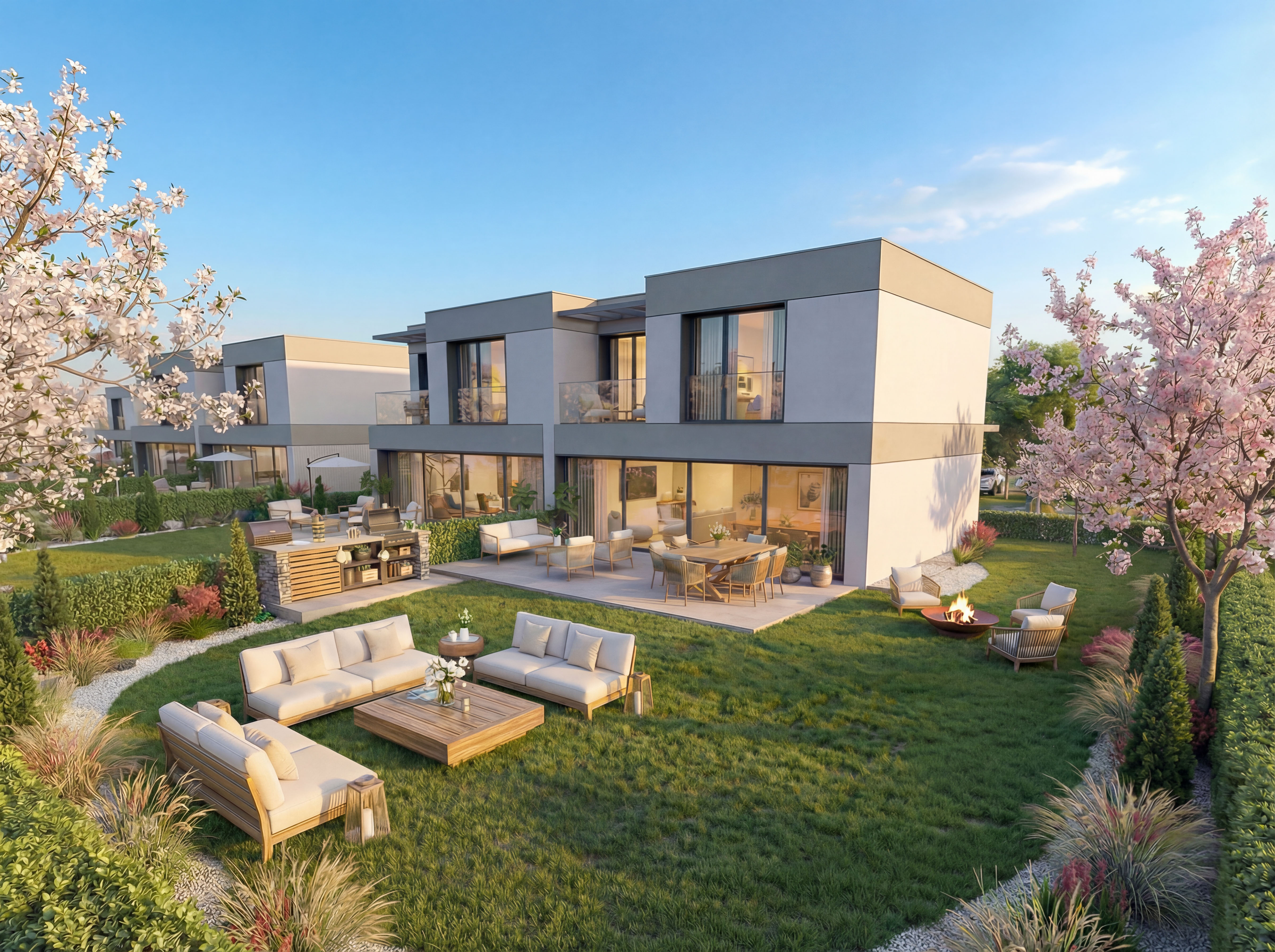 Chaque villa se distingue par son design sobre et intemporel, ses larges ouvertures et son orientation plein sud. Les vastes jardins privatifs prolongent naturellement les espaces de vie, offrant calme, luminosité et une véritable intimité.