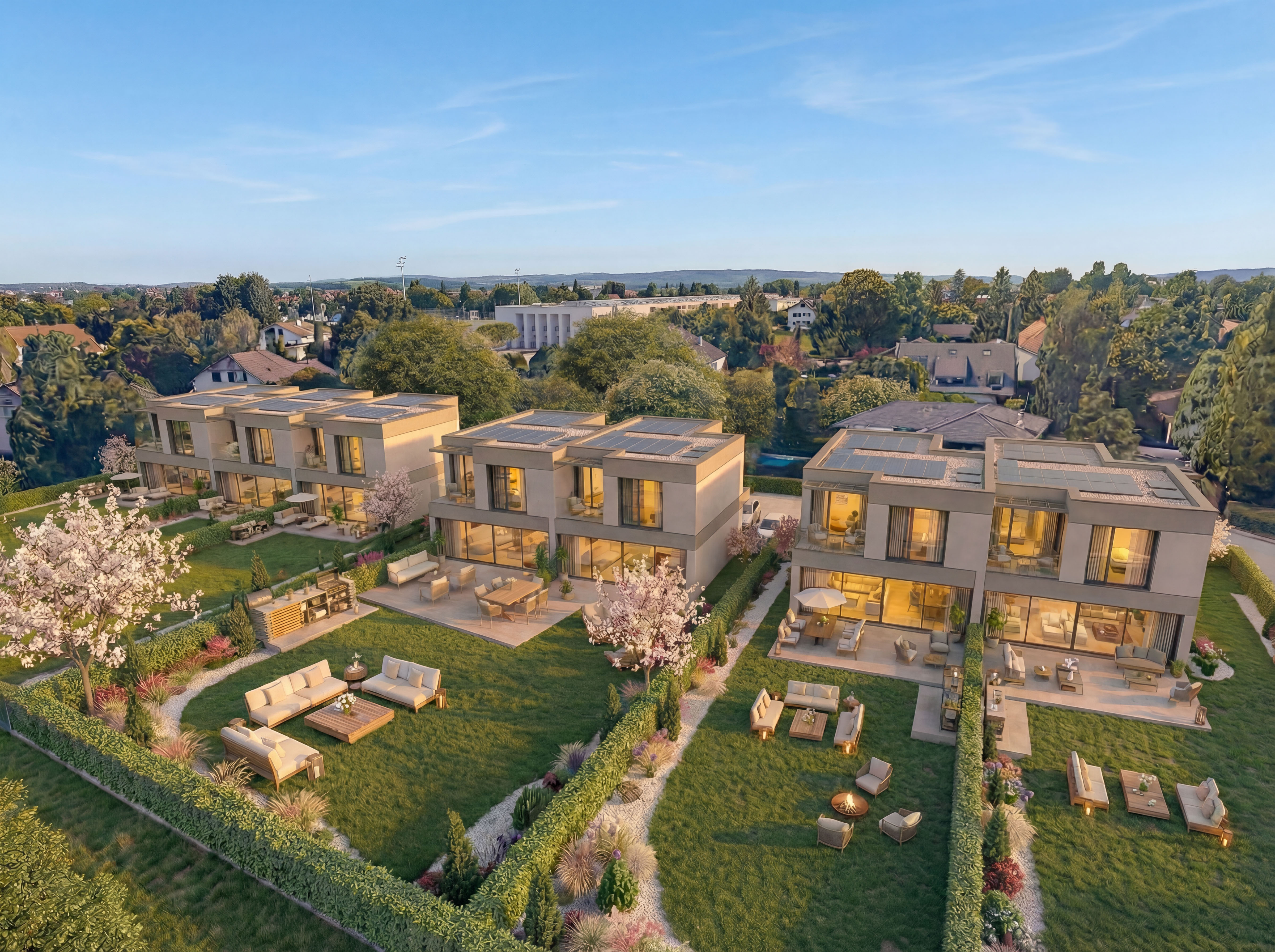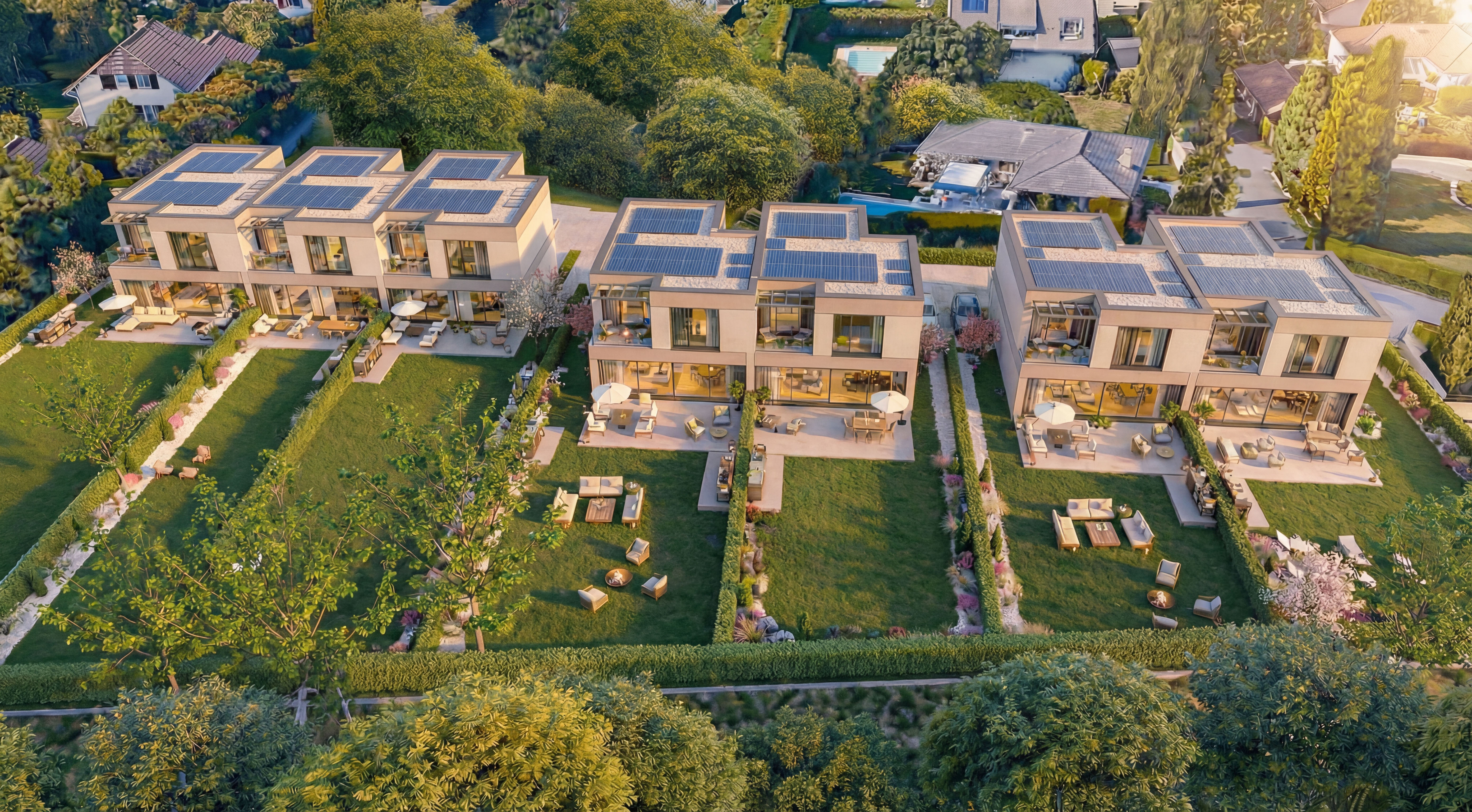 Des lignes épurées, des matériaux nobles et une construction certifiée Minergie : Seven Gardens réunit sept villas contemporaines pensées pour conjuguer confort, élégance et performance énergétique.